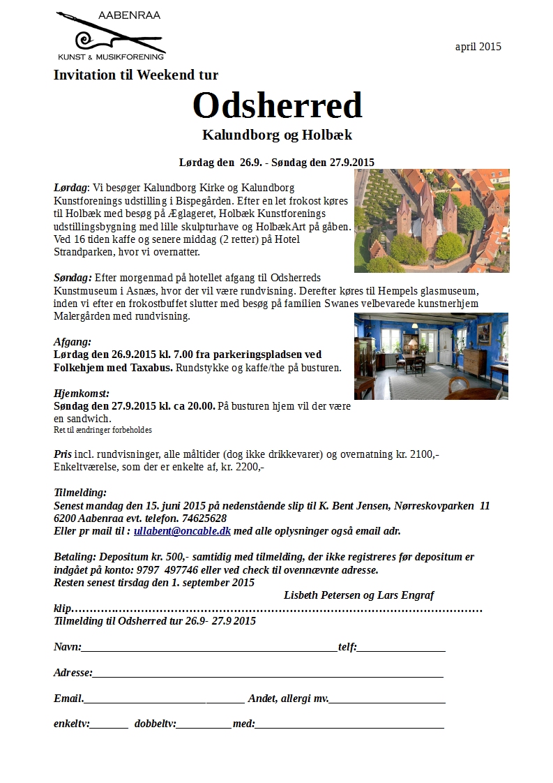 Aabenraa Kunst & Musikforening arrangerer hvert år rejser / ture til kunstudstillinger, koncerter og operaer i ind - og udland.